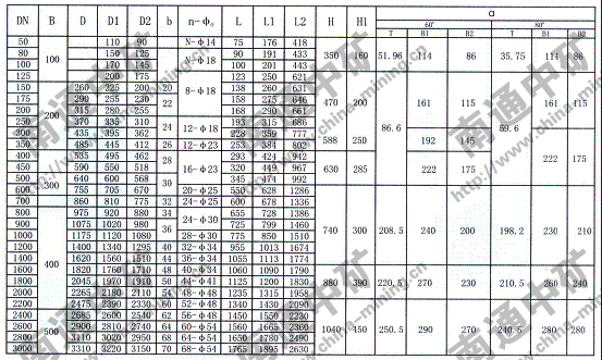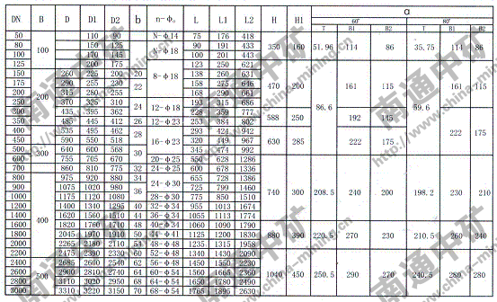 注:法蘭連接符合JB78-59《管路附件、法蘭連接尺寸》PNO.6Mpa規(guī)定,也可以按用戶要求采用其它標(biāo)準(zhǔn)。