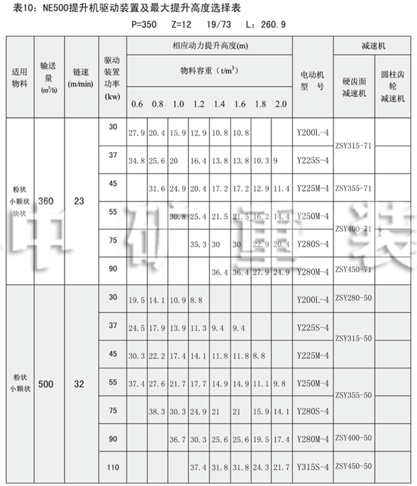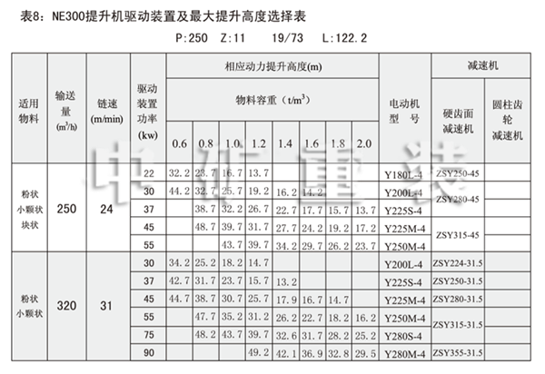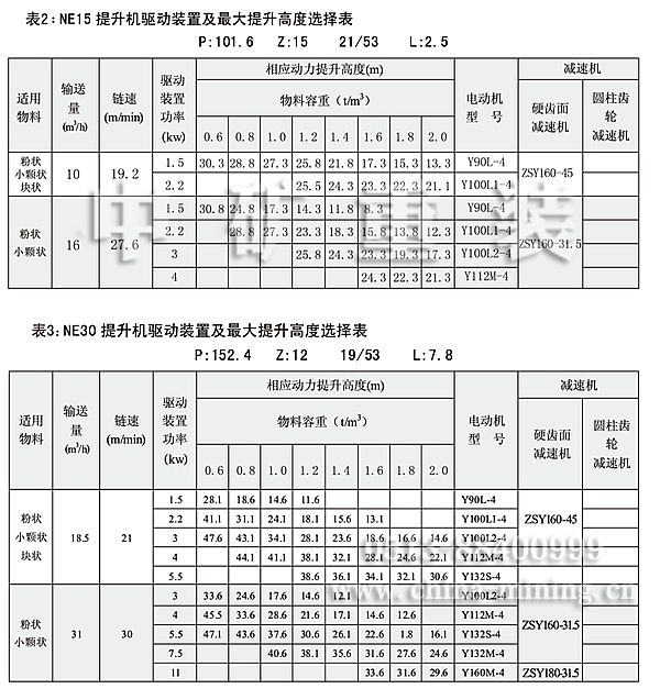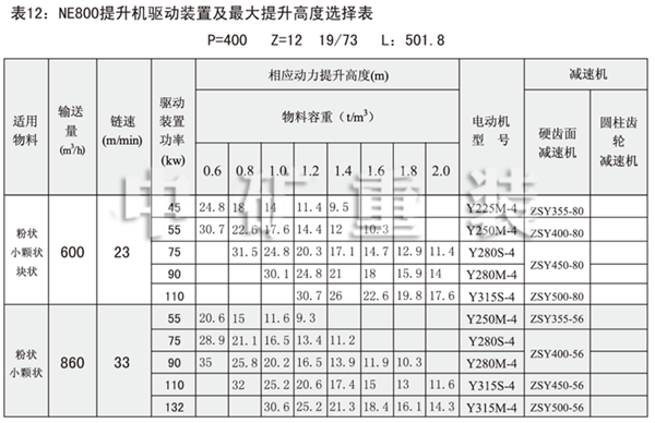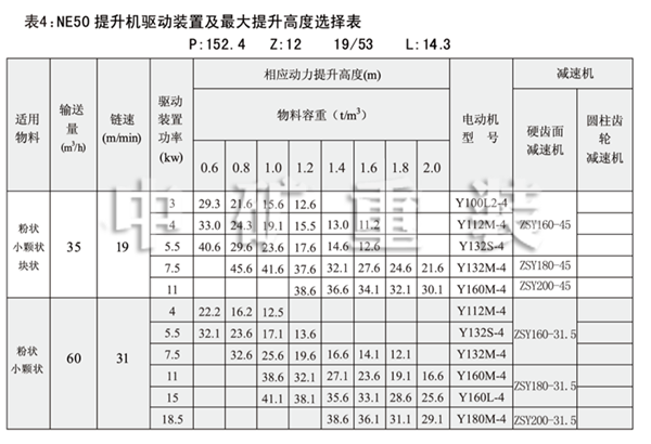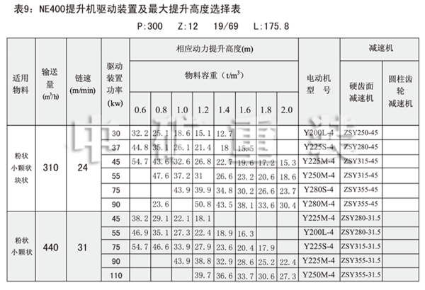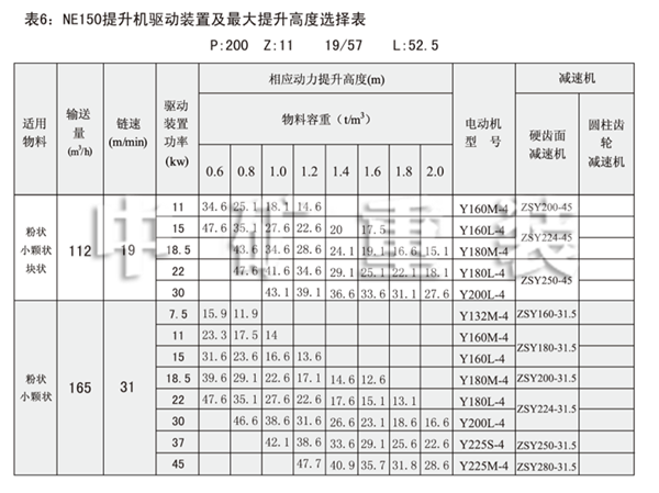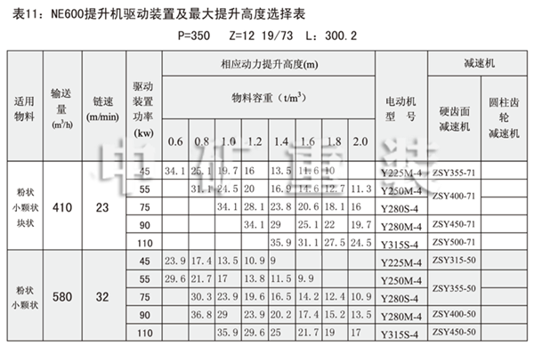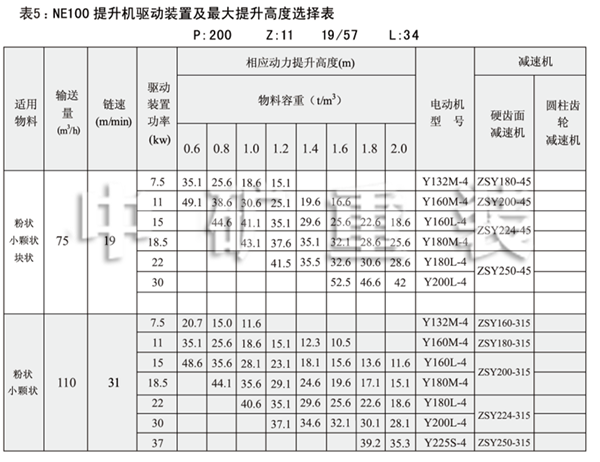 表1:NE板鏈斗式提升機技術規(guī)范表