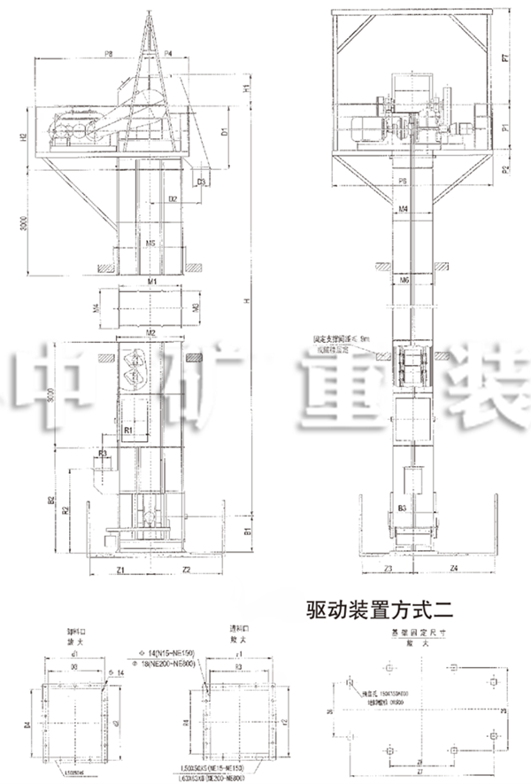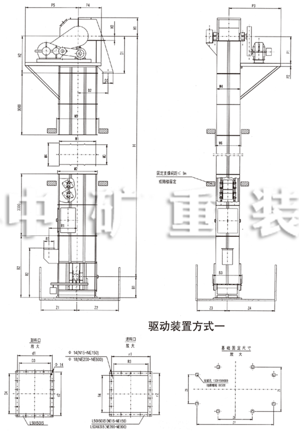 NE板鏈斗式提升機由運行部件、驅動裝置、上部裝置、中部機殼、下部裝置組成。
