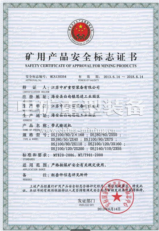 1.7.1 與輸送機配套的電動機、電控設(shè)備應(yīng)符合GB3836.1-2000《爆炸性氣體環(huán)境用電氣設(shè)備 第1部分:通用要求》的規(guī)定,并具有安全標志準用證;